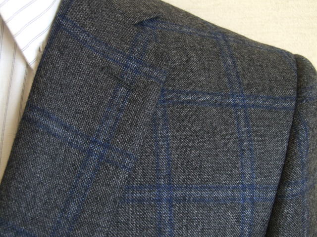 対応季節 秋冬春 上着のベント センターベント 色・柄 グレー系 ウインドペンチェック 裏地 胴裏地:キュプラ/レーヨン 袖裏地:キュプラ 総裏地 (Loro Pianaロゴ入り) 表地 毛100% SUPERFINE WOOL ■★